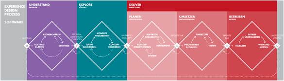 Ein Entwurf für einen Experience Design Prozess für Software (Quelle: Helvetia Schweiz)